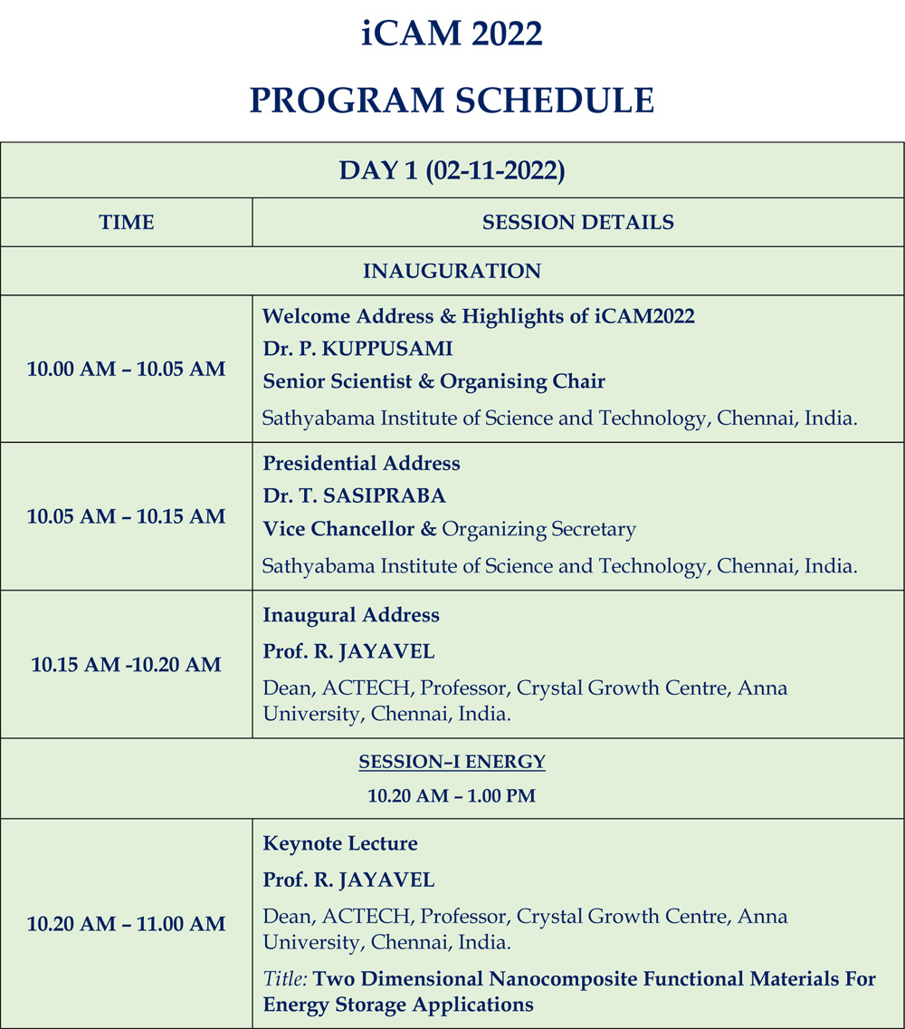 The 2nd International Conference iCAM-2022 is to be held during November 2 – 4, 2022. The objective of the conference is to highlight the current research in the thrust areas of materials science and technology